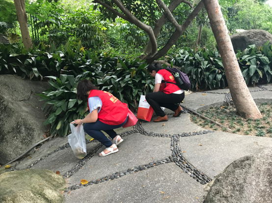此次义务劳动重点清理厦门万石植物园内主要路面的垃圾、落叶、卫生死角。志愿者们不怕脏不怕累,分组协作,用扫把、铲子、火钳等工具,对植物园内主要道路的垃圾、落叶进行集中清除,不好清扫就用火钳,没有工具就用手拣。